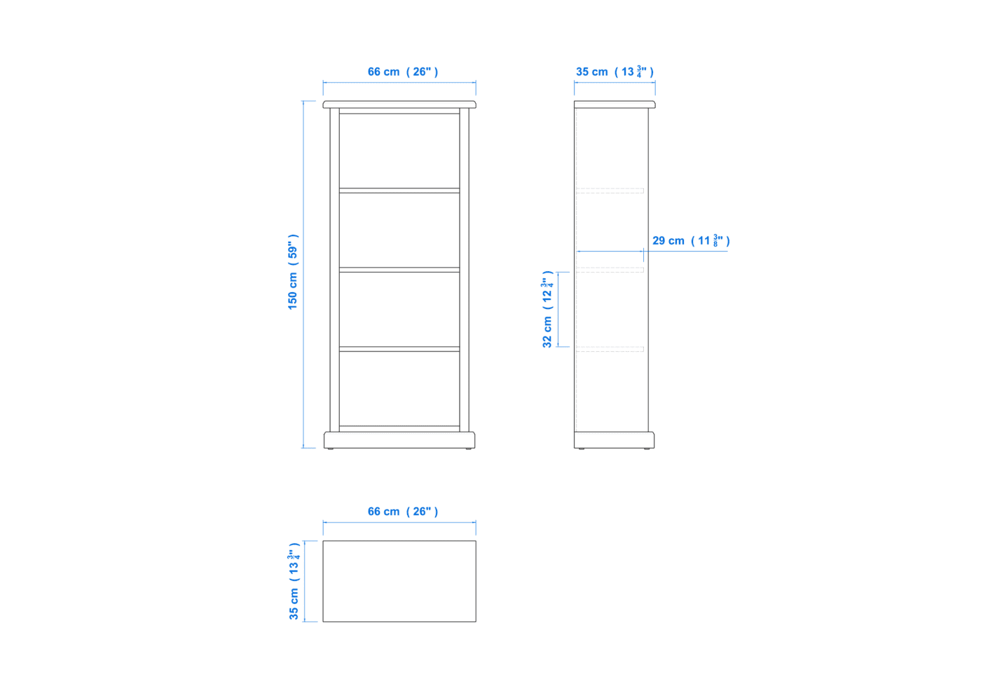 Solid timber Australian-made bookcase with adjustable shelves and a choice of colours. Measurements: H150xW66xD35cm. Made to order with 2-week delivery.