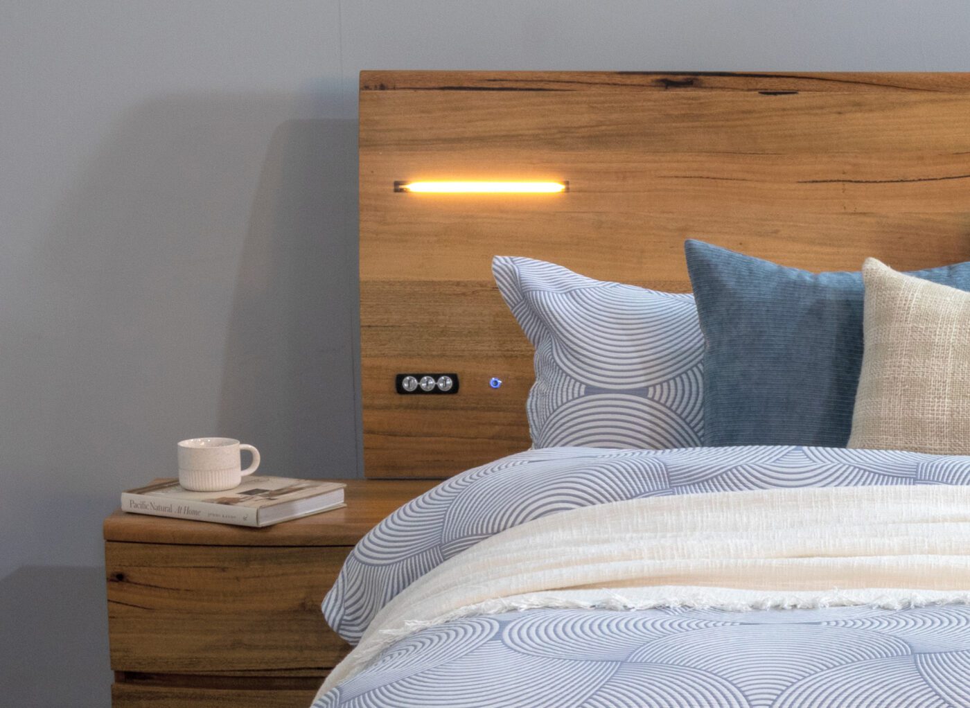 The Esperance Timber Bed is crafted from quality Mari hardwood in a natural finish. Available in Queen and King, it’s the perfect blend of timeless style and modern design.