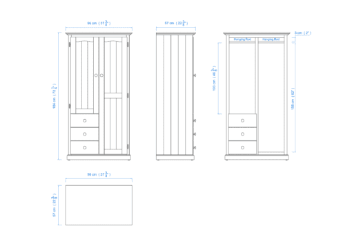 Introducing the Heritage 2 Door 3 Drawer Wardrobe with Short & Long Hanging, a premium storage solution proudly Australian made. Crafted from solid timber, this wardrobe offers the perfect blend of style and functionality. Behind the two doors, you’ll find a spacious hanging rail for clothing, along with shelving to neatly organize folded items or accessories. The three drawers provide additional storage, ideal for keeping your space clutter-free.