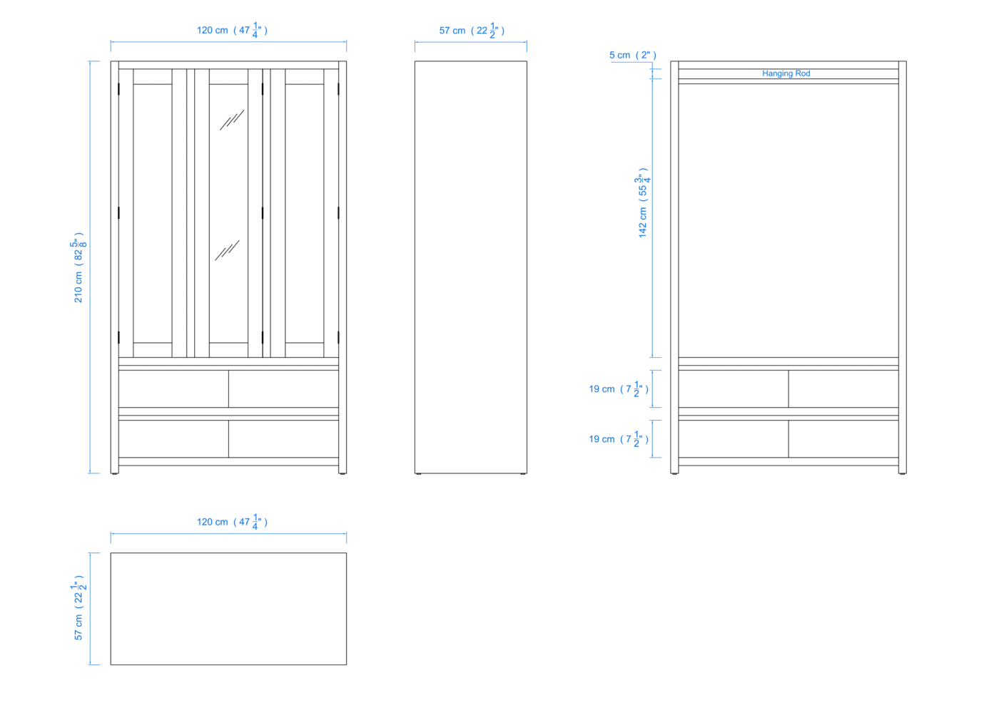 Modern 120cm All Hanging Wardrobe with 4 Drawers – Aussie Made Choice of Colours