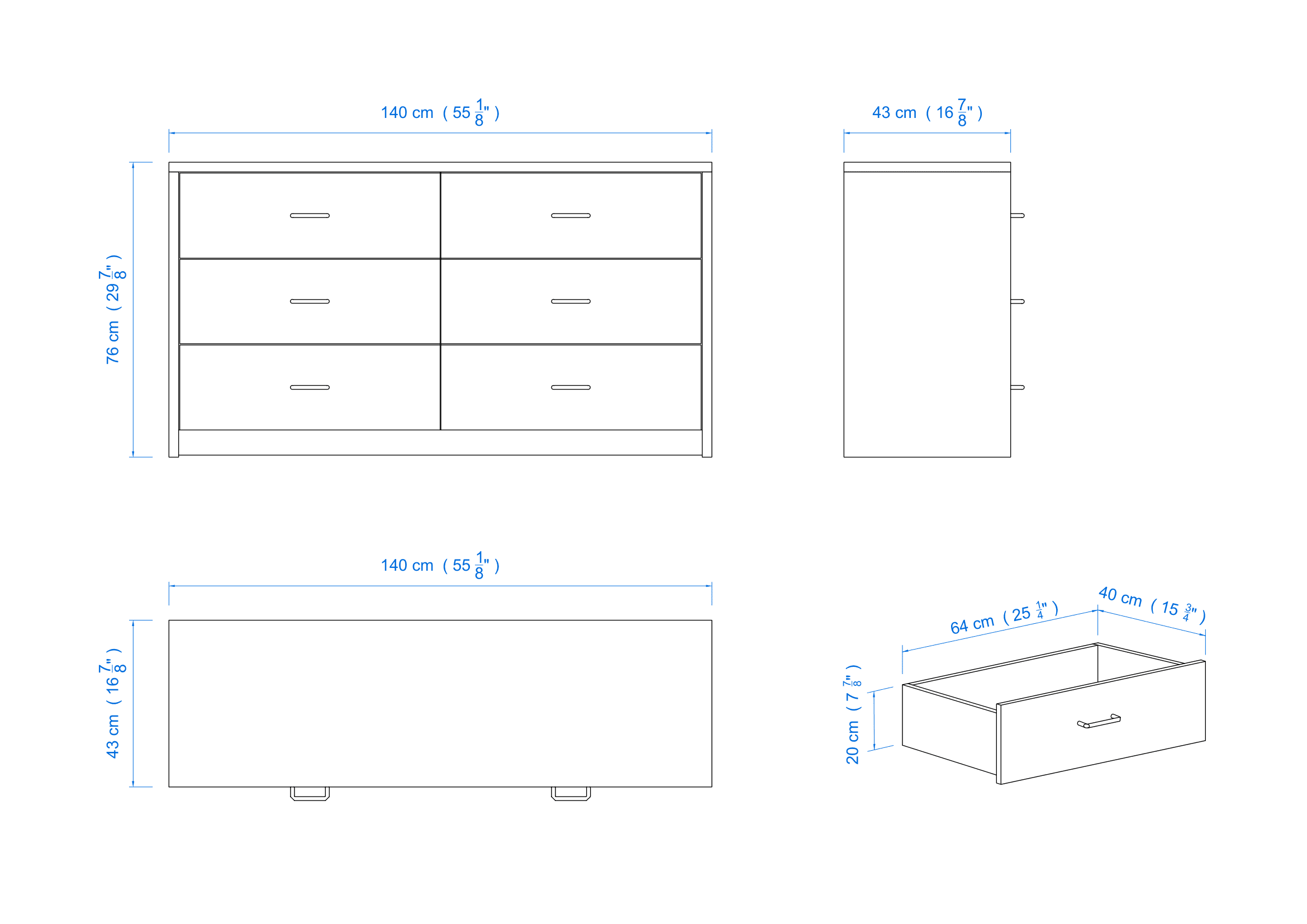 Add elegance and practicality to your bedroom with the Nook Dresser. Featuring a warm grey oak finish and six large drawers, this piece offers ample storage for clothes and accessories. LED lighting highlights its modern design, making it a stylish centerpiece for your space. Dimensions of Dresser: H76 x W140 x D43cm.