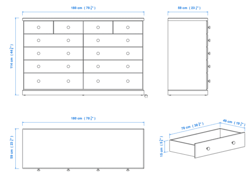 With dimensions measuring W1800 x D590 x H1140mm, our drawer is designed to fit seamlessly into your desired space, providing both practicality and visual appeal. Elevate your interior design with the timeless beauty and superior craftsmanship of our Solid Australian Timber Drawer.