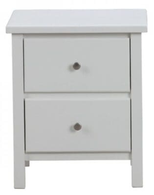 Solid timber construction in white. Bedside: W460 x D450 x H600mm Tallboy: W870 x D400 x H970mm Warranty: 12 months.