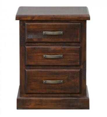 Made from Aust and NZ Pine, with solid pine timber drawers and metal runners. 490w x 420d x 700h mm